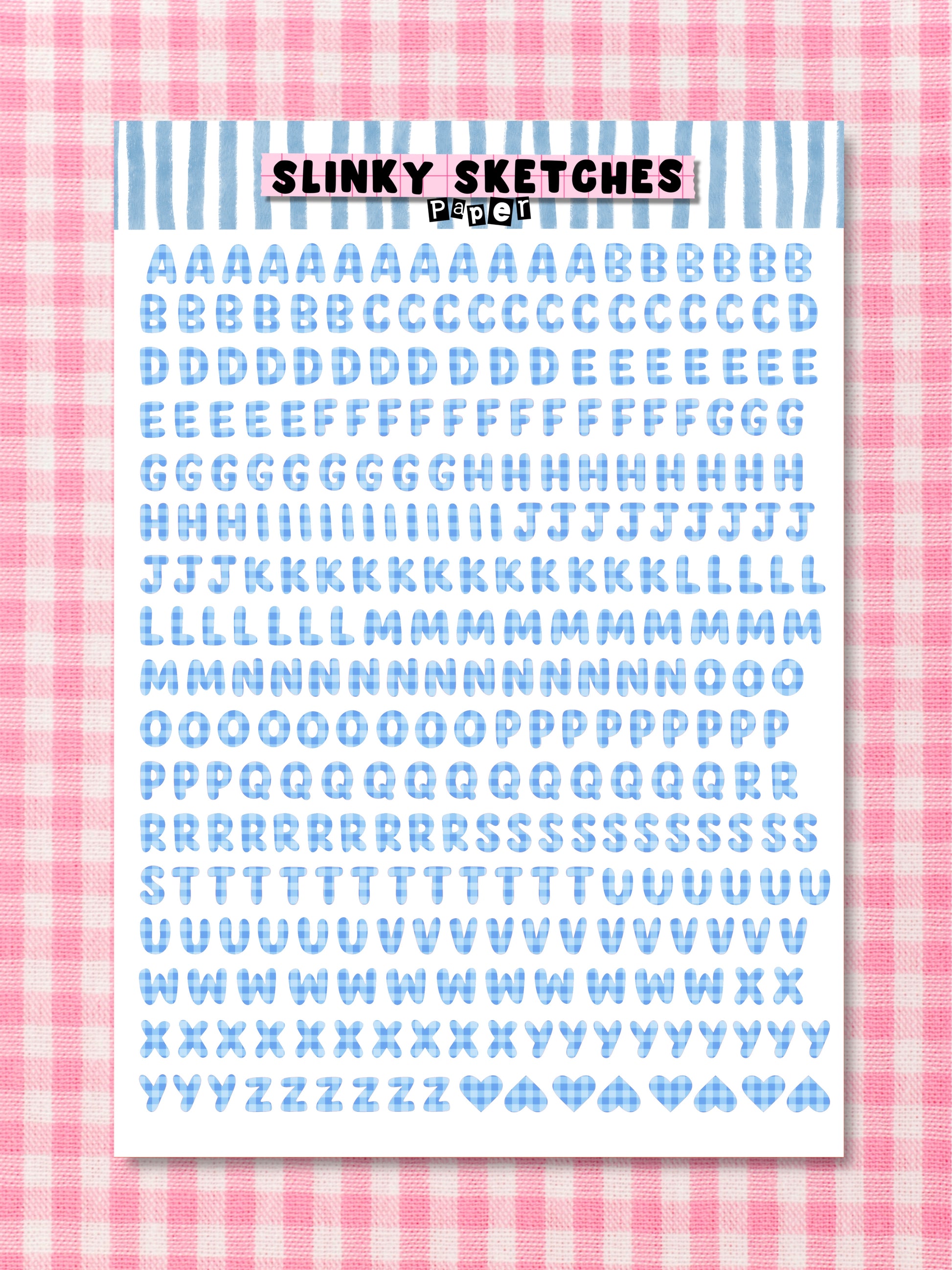 A5 Paper Blue Gingham Lettering Sticker Sheet