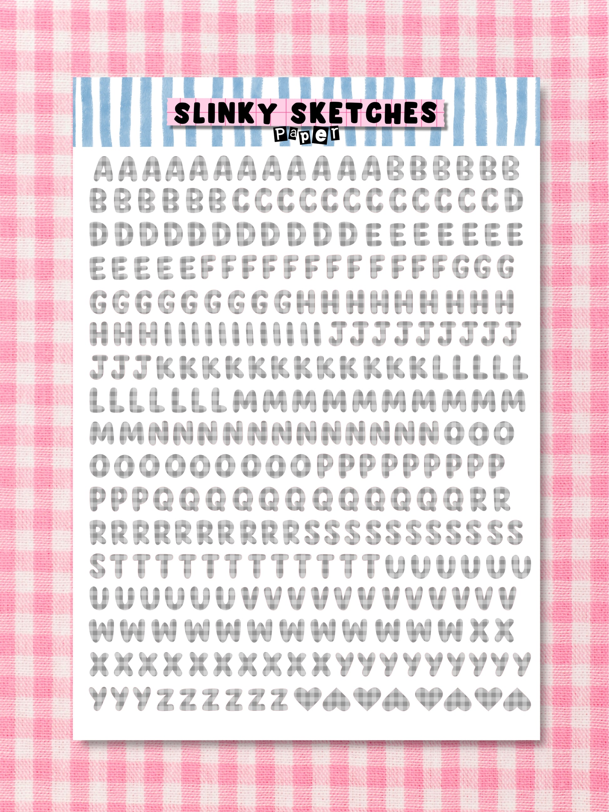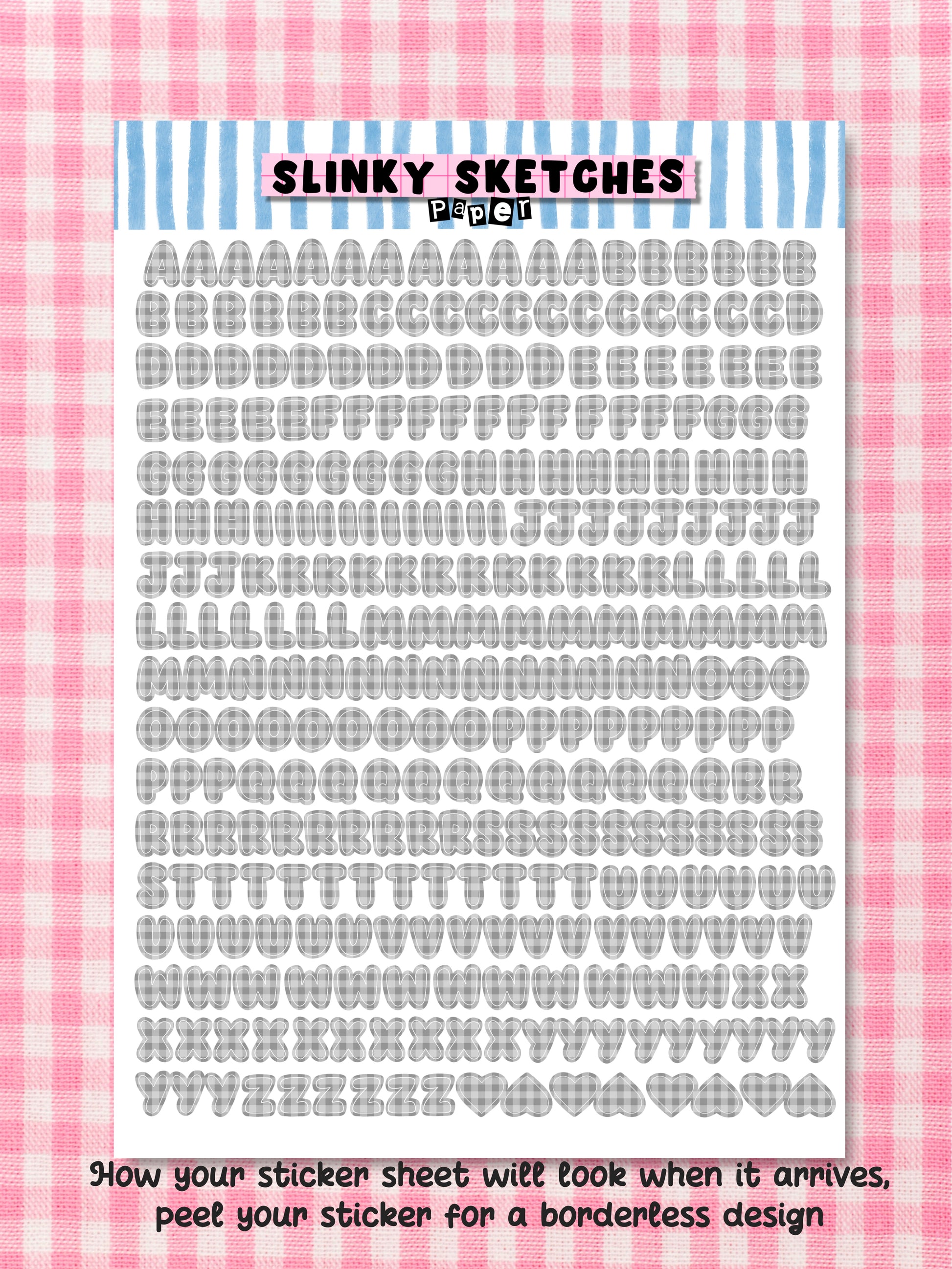 A5 Paper Grey Gingham Lettering Sticker Sheet