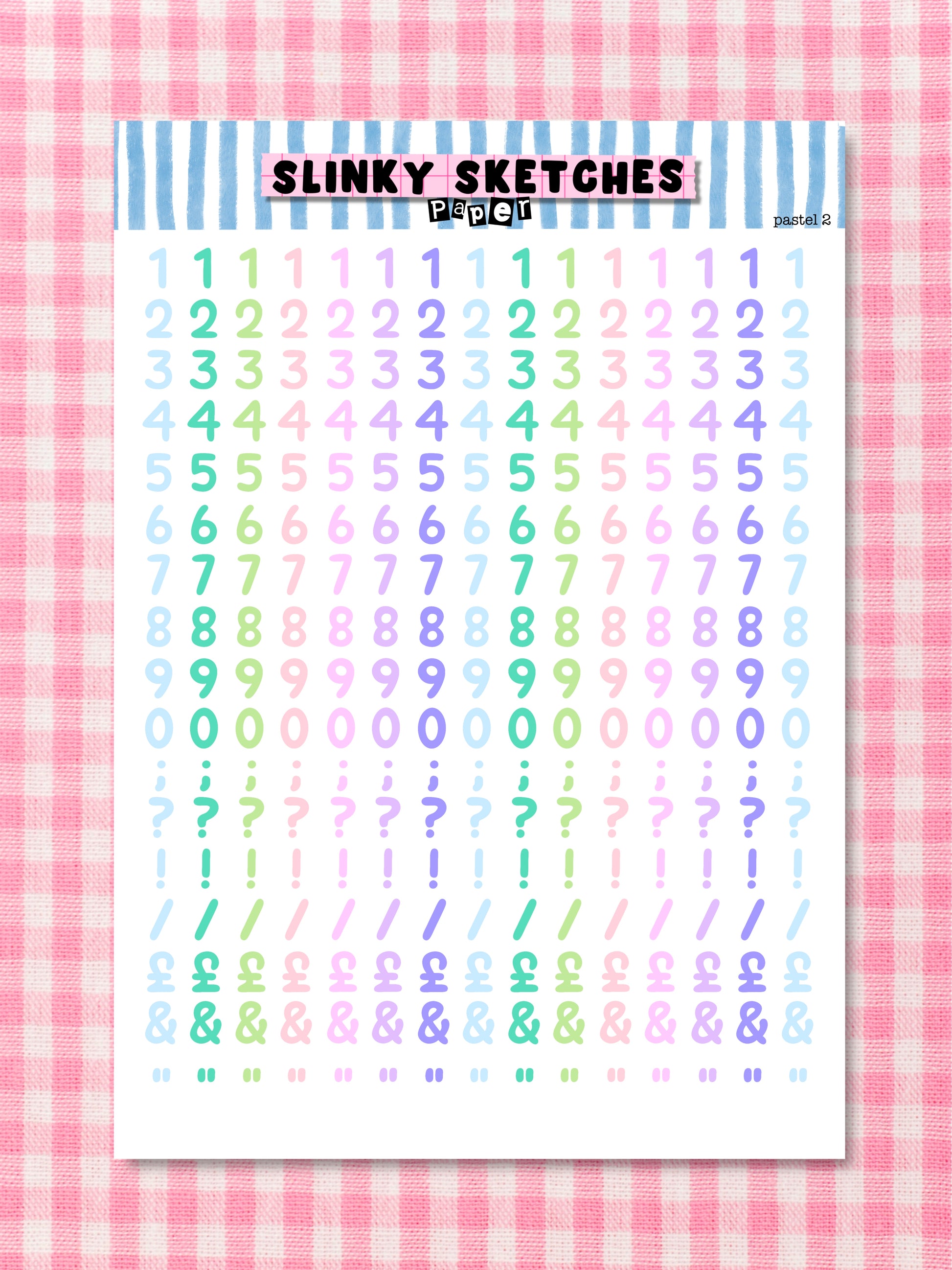 A5 Paper Pastel 2 Numbers etc Sticker Sheet