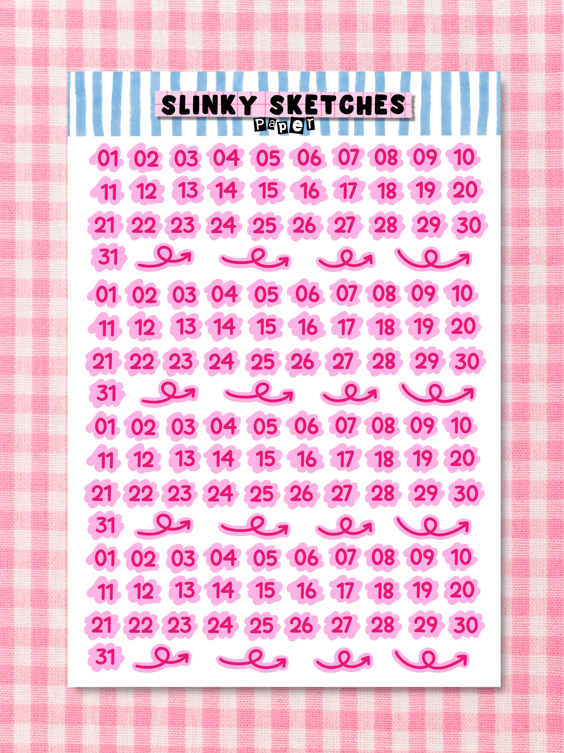 A5 Paper Pink Nos. of Month Sticker Sheet