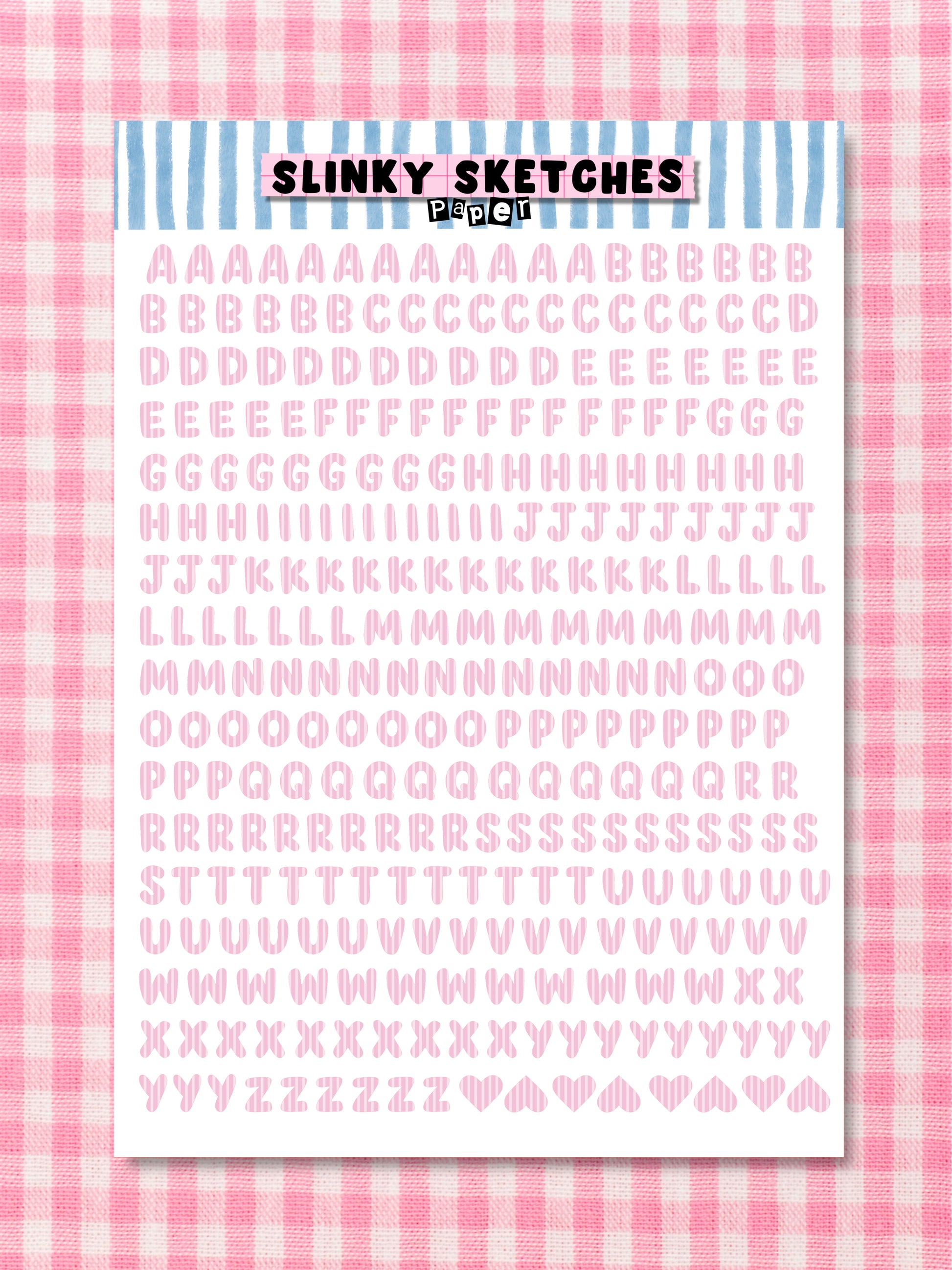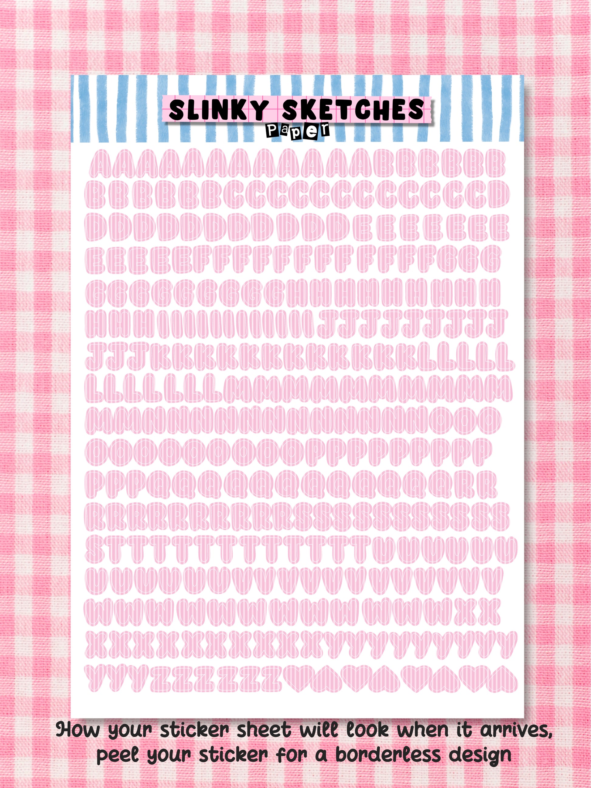 A5 Paper Pink Stripe Lettering Sticker Sheet