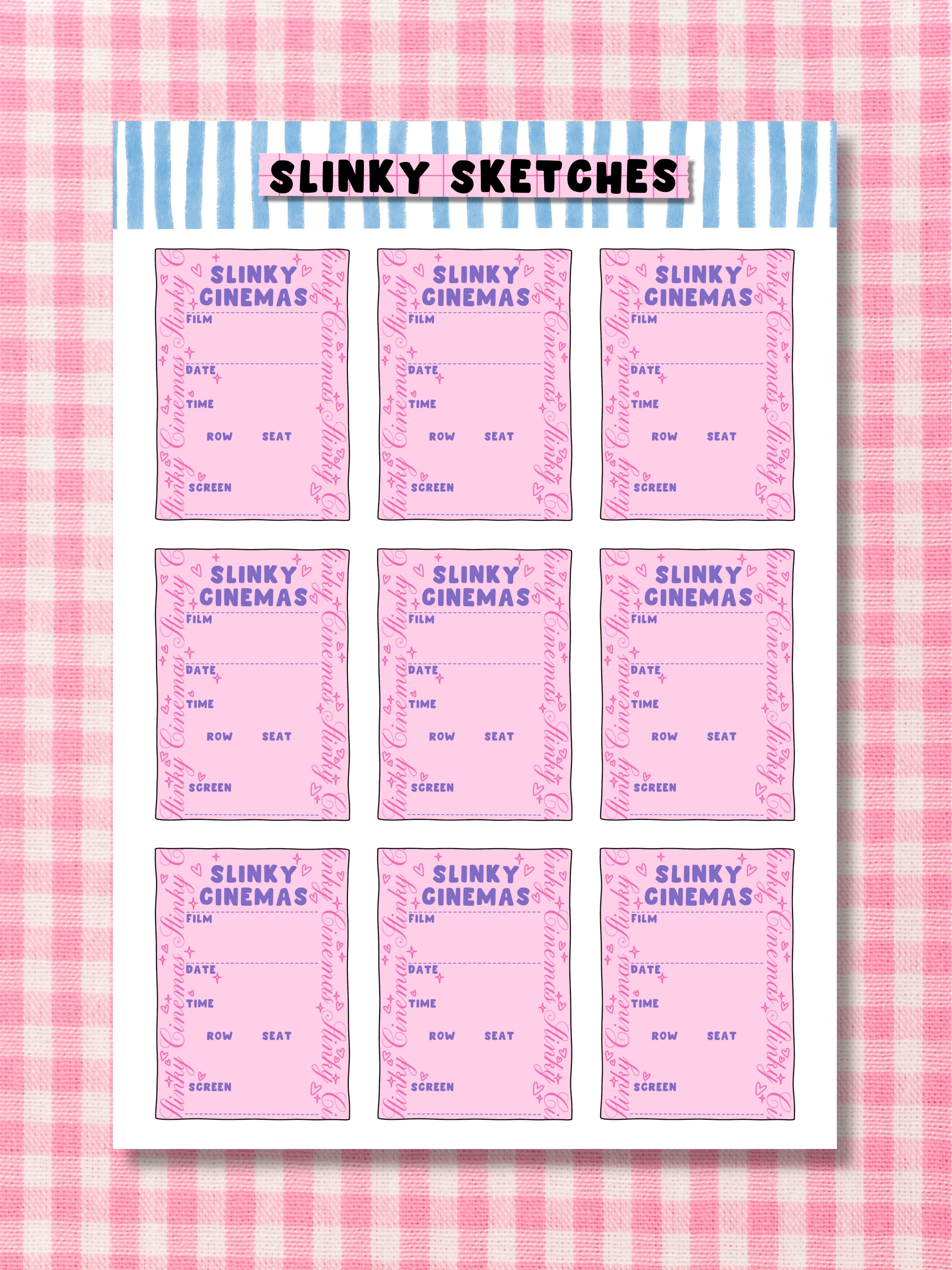 Slinky Cinemas Tickets A6 Sticker Sheet